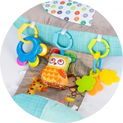- 5 în 1 utilizări – sprijin pe burtică, poziție pe spate, suport la ședere, relaxare și stimulare distractivă.