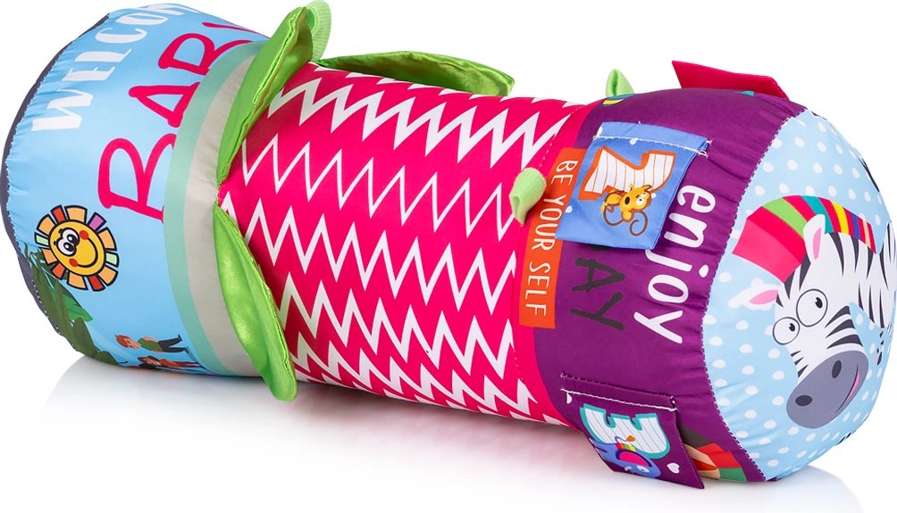 Datorită materialelor moi și modelelor atractive, copilul este motivat să ridice căpușorul și mânuțele, întărind în mod natural mușchii gâtului, spatelui și brațelor. Construcția ușoară facilitează transportul – puteți lua perna oriunde, pentru ca bebelușul să se joace și să exploreze în orice moment al zilei.