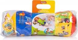 Culorile vii, jucăriile moi și texturile variate stimulează văzul, simțul tactil și curiozitatea bebelușului și susțin coordonarea mână–ochi.