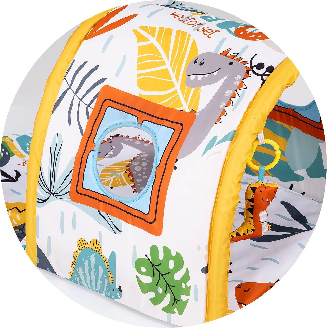 Datorită designului sigur și confortabil, covorașul oferă un loc plăcut pentru joaca pe burtică și pe spate. Ferestruicile și detaliile tunelului invită la privit și la joaca de-a v-ați ascunselea, dezvoltând curiozitatea și imaginația. Elementele colorate și texturile oferă stimuli bogați pentru dezvoltarea senzorială și primele interacțiuni sociale cu părinții.