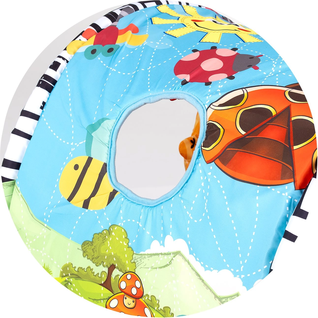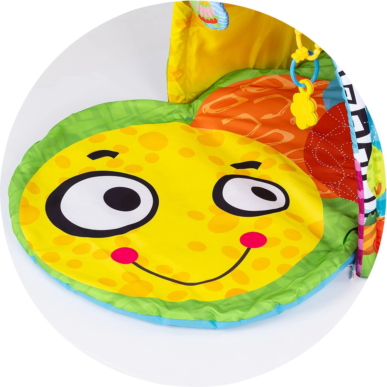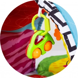 - Căptușeală moale, jucării suspendate cu clame, tunel/arcadă