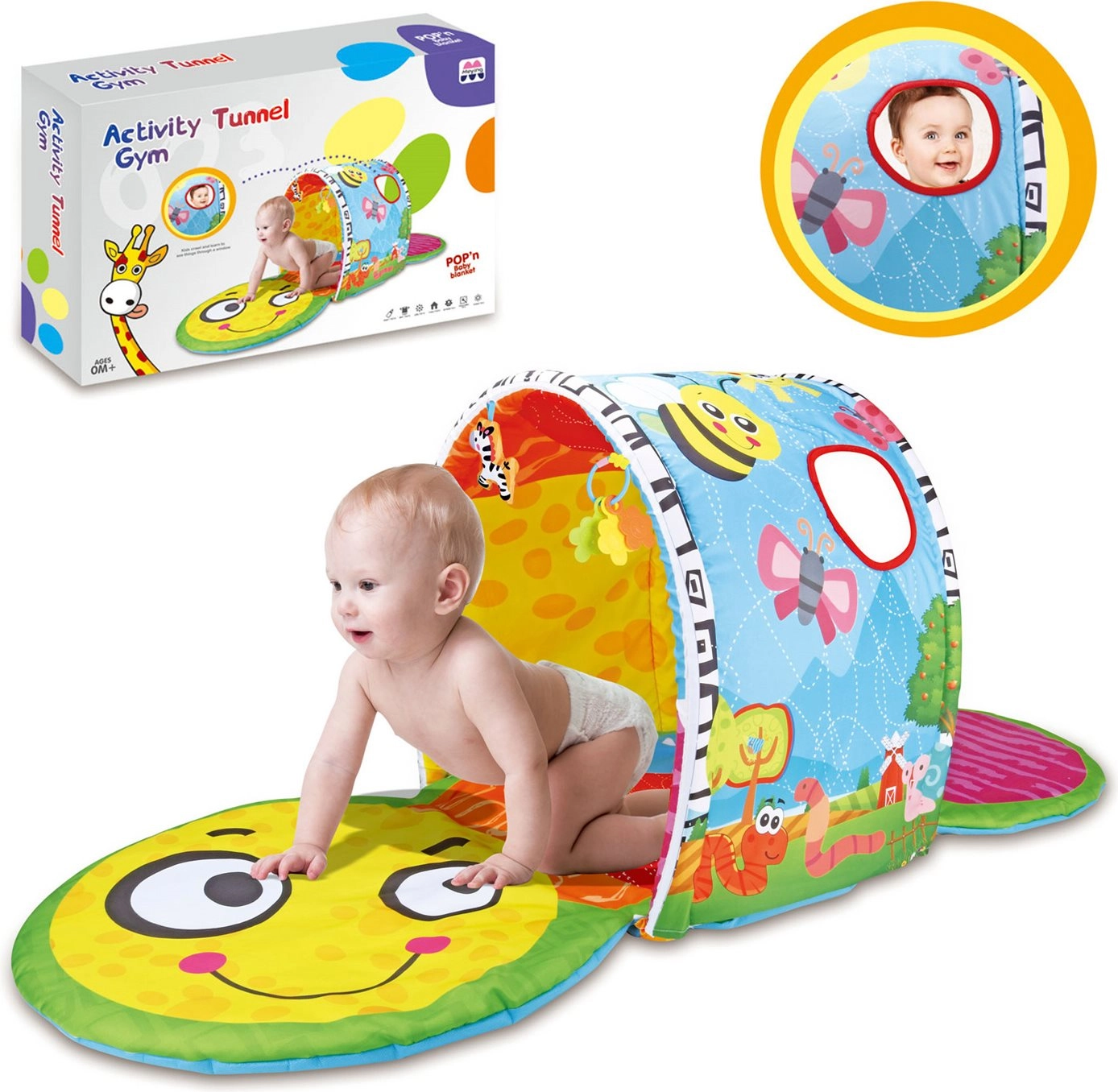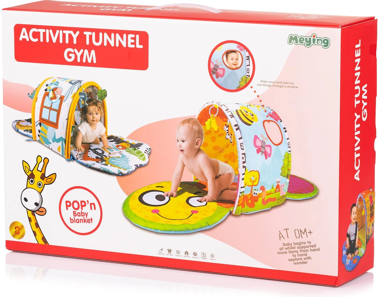 Modelele colorate, jucăriile suspendate și tunelul sigur susțin percepția senzorială, coordonarea mână–ochi și dezvoltarea motricității grosiere încă din primele luni.