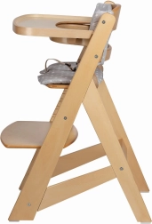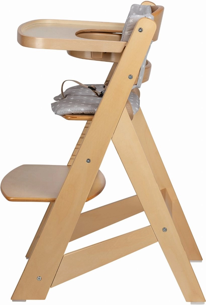 Construcția stabilă din lemn, centura de siguranță în 3 puncte și căptușeala moale reduc riscul de cădere și asigură un șezut confortabil.