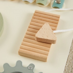 Xilofon, angrenaje, labirint, elemente glisante și de deschidere, mărgele și ușițe cu surpriză – toate îi motivează pe copii să exploreze și dezvoltă motricitatea fină și logica.