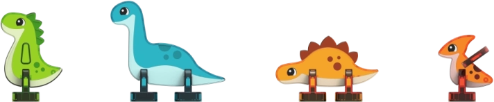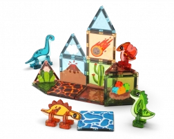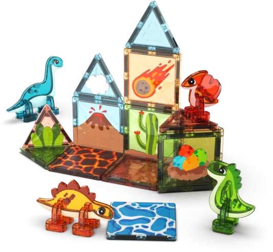 În pachet se găsesc și 4 figurine de dinozauri care adaugă poveste construcțiilor și transformă fiecare creație într-o aventură. Setul este ideal pentru primele noțiuni despre magnetism, dezvoltarea motricității fine și a gândirii logice.