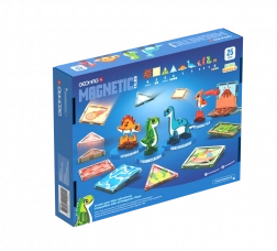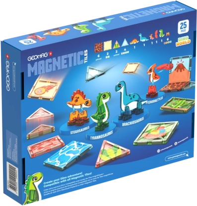 Setul magnetic de construcție Geomag Magnetic Tiles Dino aduce o lume creativă plină de culori și posibilități nesfârșite. Piesele cu magneți pe toate laturile aderă ferm între ele, permițând copiilor să combine ușor formele, să creeze construcții stabile și să descopere bazele percepției spațiale.