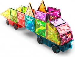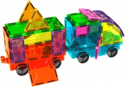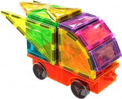 Acest set colorat aduce jocul deschis și posibilități nelimitate de construcție. Magneții integrați pe toate laturile formelor asigură conectarea ușoară și stabilă, astfel încât copiii pot asambla rapid mașini, remorci și construcții 3D originale. Jocul dezvoltă în mod natural gândirea spațială, învățarea culorilor și a formelor geometrice.