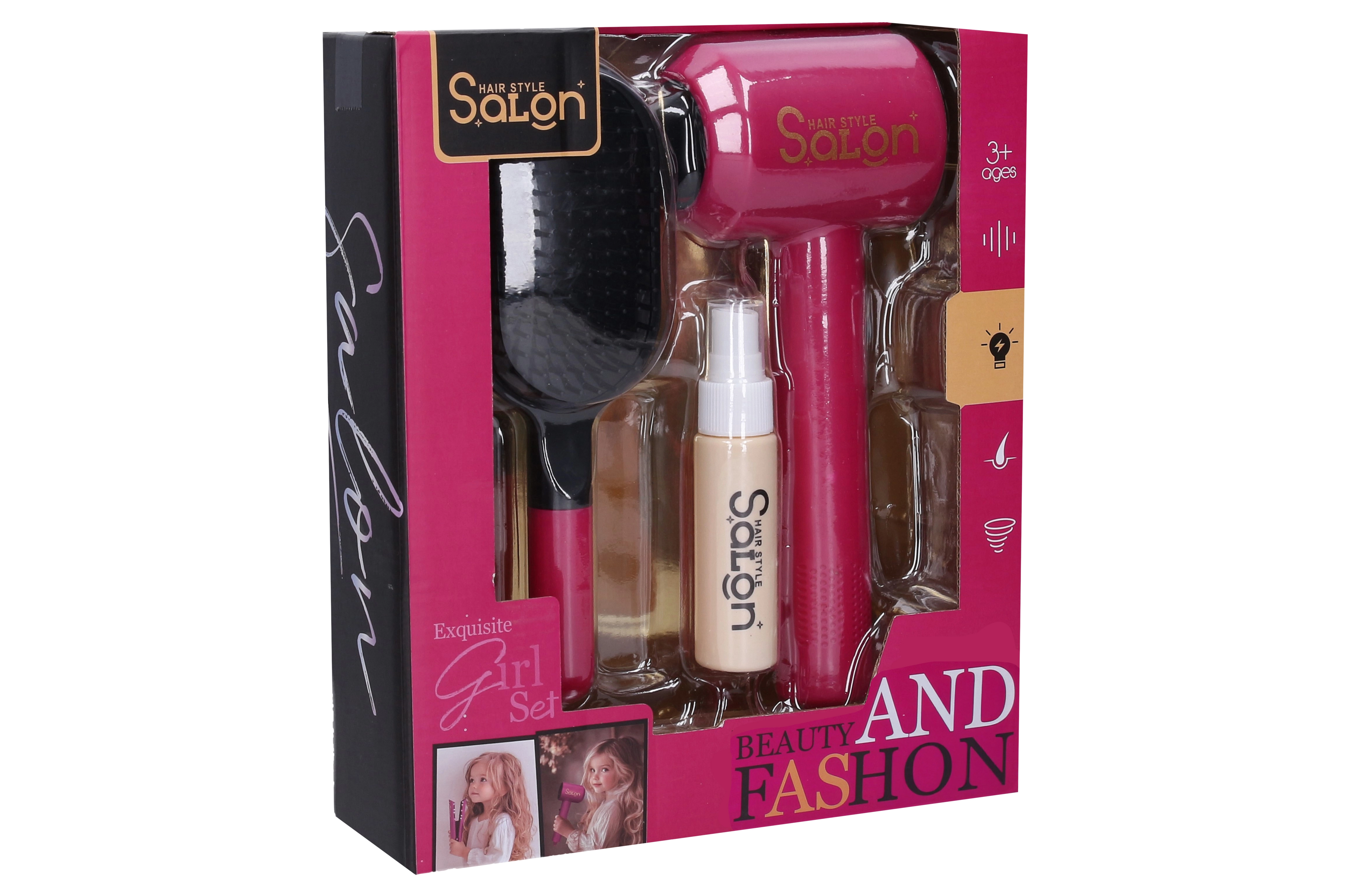 Acest set cosmetic adorabil este o alegere grozavă pentru copiii care iubesc jocul de-a coafeza. Uscătorul de păr funcțional pe baterii oferă o senzație realistă, iar peria și spray-ul permit îngrijirea părului păpușilor și al prietenelor. Datorită dimensiunii compacte de 21 cm, setul se ține confortabil în mână și se transportă ușor.