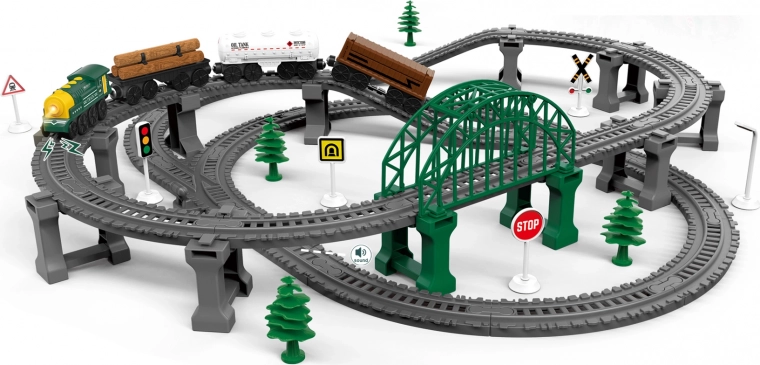 Acest set de trenuleț oferă ore de distracție creativă pentru copii. Datorită vagoanelor conectate magnetic, manipularea este ușoară și sigură. Pe locomotivă veți găsi butoane de control practice – cel din mijloc funcționează ca ON/OFF, iar cu butoanele laterale stabiliți direcția de mers. O porțiune specială a traseului activează efectele sonore, care adaugă autenticitate deplasării.