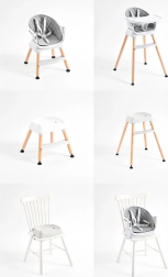Scaun înalt, fotoliu jos, booster, șezut fără picioare, scaun tip bar și taburet jos – o soluție care crește odată cu copilul și economisește spațiu și bani.