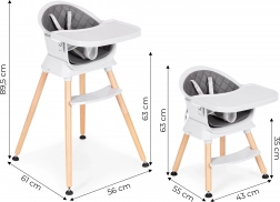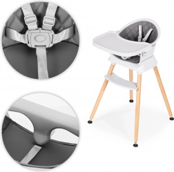 Scăunelul ECOTOYS 6‑în‑1, stilat și practic, se adaptează perfect ritualurilor zilnice – de la primele piureuri până la mâncatul și joaca independentă. Datorită construcției gândite, îl poți transforma ușor în scaun de hrănire înalt, fotoliu mai jos, șezut/booster pentru un scaun clasic, șezut fără picioare, scaun tip bar sau taburet jos. Șezutul modelat cu grijă, cu pernă moale și suport pentru picioare, susține șederea ergonomică.