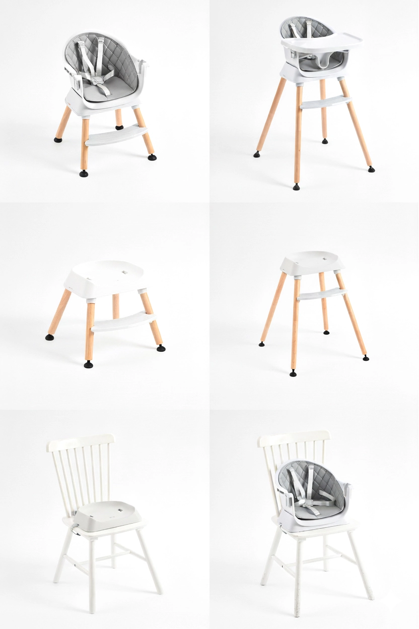 Scăunelul universal de hrănire pentru copii ECOTOYS 6‑în‑1 crește odată cu copilul tău, de la 6 la 36 de luni. Oferă 6 funcții într‑unul, husă matlasată din piele ecologică, ușor de curățat, tavă detașabilă compatibilă cu mașina de spălat vase, centură de siguranță în 5 puncte și picioare din lemn stabile, cu capete antiderapante. Capacitate maximă 20 kg și suport de picioare reglabil pentru confort și siguranță la masă și la joacă.