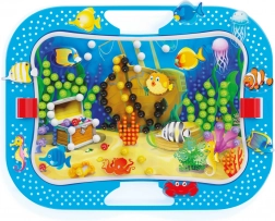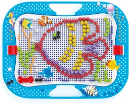 Acest joc creativ de mozaic este ideal pentru preșcolari și școlarii mici. Placa perforată este montată într-un cadru solid, cu margini rotunjite, fiind sigură și confortabilă pentru manipularea de către copii. Cu ajutorul pinișoarelor colorate, copiii creează motive distractive din ocean – de la peștișori viu colorați până la alte creaturi marine. Datorită șabloanelor și creației libere, își dezvoltă imaginația și răbdarea.