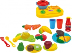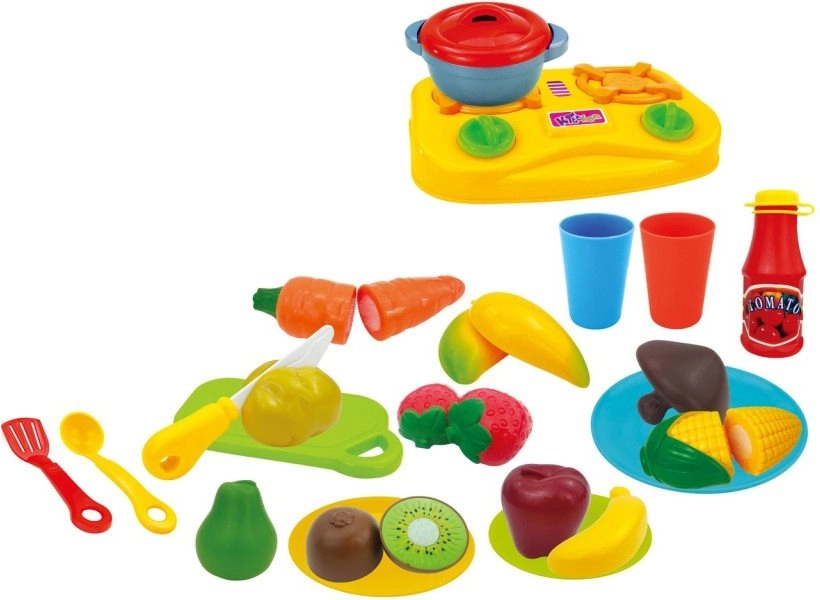 Coșul practic facilitează depozitarea și transportul, astfel că setul este potrivit atât pentru joaca acasă, cât și în călătorii. Setul oferă un joc realist de gătit, susține jocul de rol și recunoașterea culorilor și formelor.