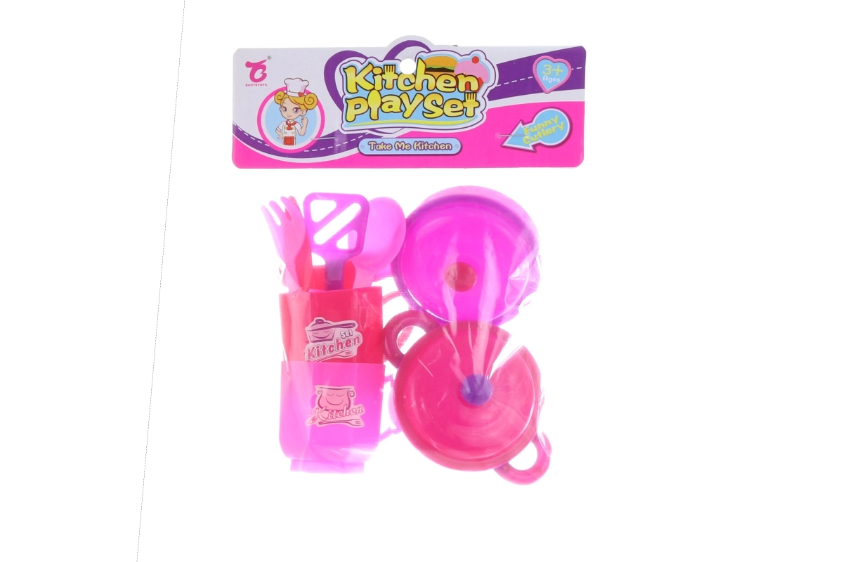 Acest set colorat de vase din plastic pentru copii este un excelent accesoriu pentru bucătăria de jucărie. Setul include piese de bază cu care copiii se pot juca de-a gătitul și servitul mesei, imitând în siguranță activitățile zilnice ale adulților.