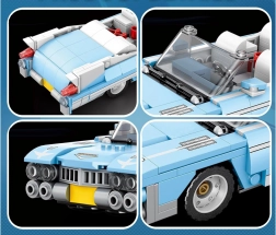 Construiește o mașină emblematică în spiritul anilor ’50: un cabriolet albastru cu capotă lungă, siluetă joasă și detalii cromate. Din 308 piese vei crea un model realist cu design elegant, dificultate medie și structură stabilă – ideal pentru fanii seturilor tehnice și ai esteticii auto clasice.