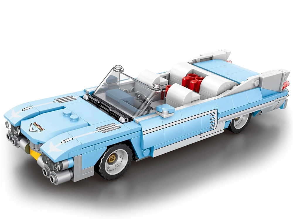 Cabrioletul albastru inspirat de clasicele americane ale anilor ’50 impresionează prin liniile curate ale caroseriei și finisarea stilată a interiorului. Datorită celor 308 piese proiectate cu precizie, construcția este fluentă, distractivă și totodată suficient de provocatoare pentru orice pasionat.