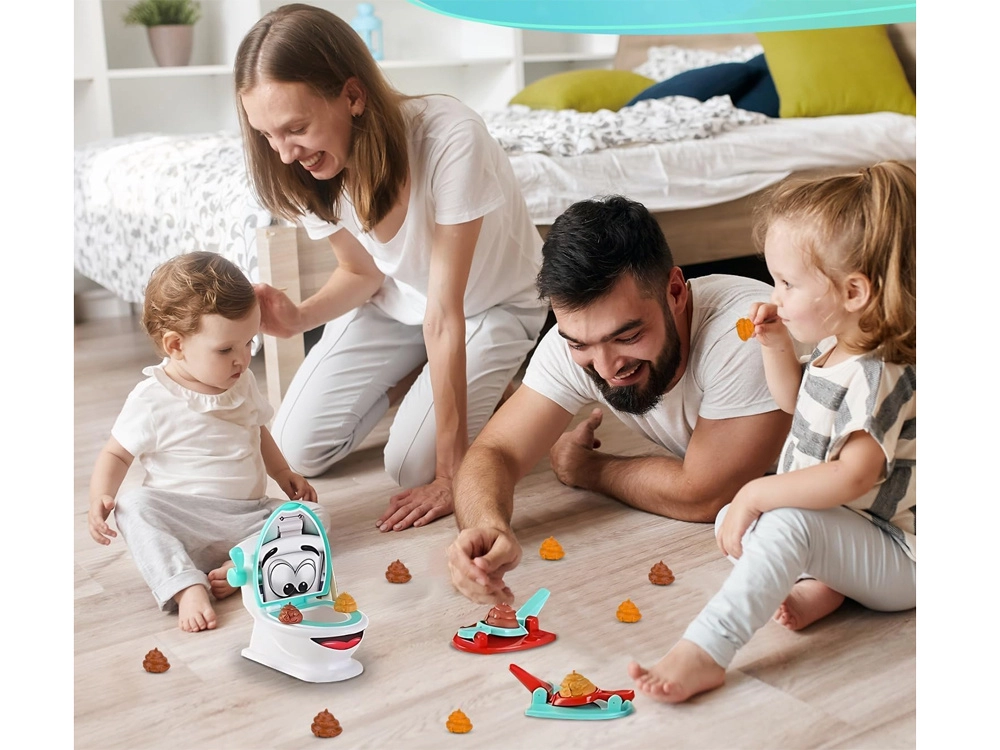 Toaleta cu expresie hazlie, lansatoarele și grămăjoarele „căcățeilor” în două culori promit reguli simple și multă distracție. Fiecare jucător are propriul set și încearcă simultan să nimerească vasul – cine închide primul capacul câștigă titlul de Maestru al spălării.