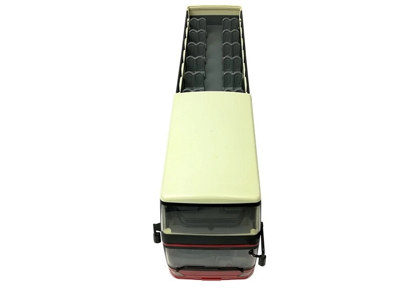 În pachet se află acumulatorul reîncărcabil 4,8 V și încărcătorul USB, astfel încât autobuzul este rapid gata de drum. Balustradele incluse permit transformarea ușoară a etajului superior într-un autobuz cabrio deschis pentru vizitare. Anvelopele din cauciuc moale oferă tracțiune bună și rulare silențioasă pe diverse suprafețe.