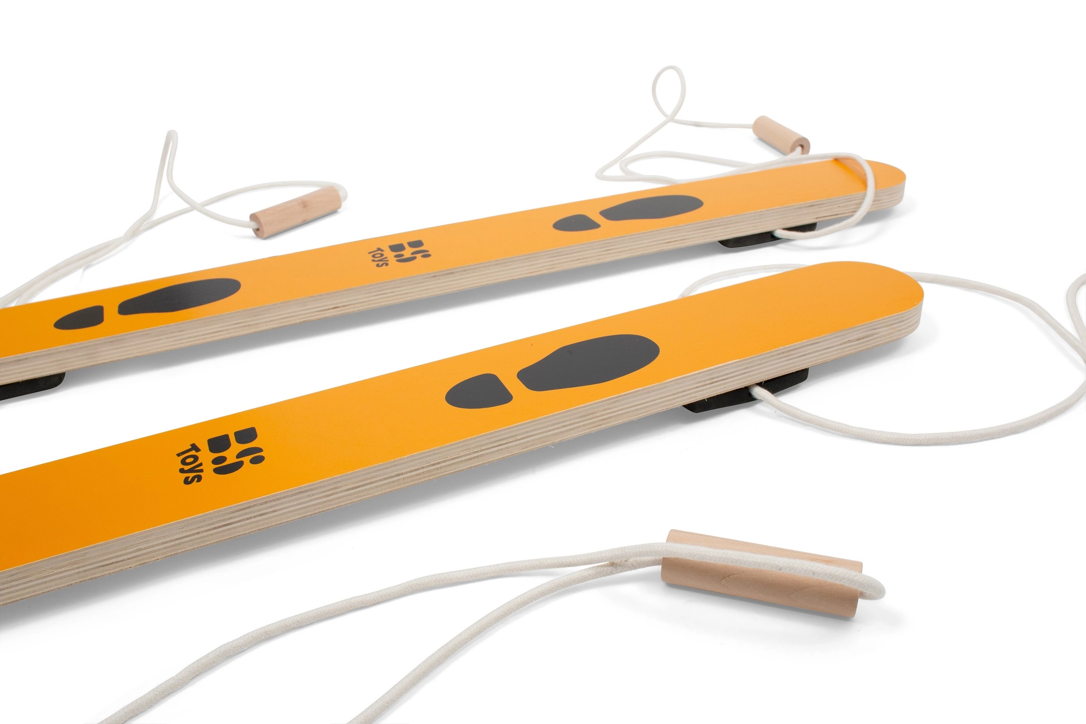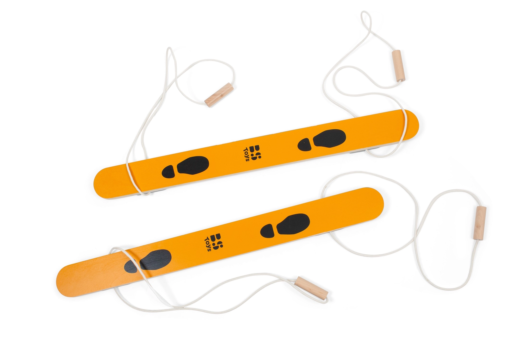 Schiurile sunt fabricate din lemn de calitate și echipate cu o frânghie solidă cu mânere confortabile pentru un pas sigur. Datorită dimensiunilor de 90 × 8,5 × 2 cm, sunt stabile, ușor de controlat și potrivite atât pentru începători, cât și pentru micii sportivi avansați.