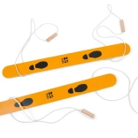 Exersați-vă echilibrul și munca în echipă cu aceste schiuri din lemn pentru doi jucători. Ideale pentru copii de la 6 ani, care prin mers sincron își dezvoltă coordonarea, stabilitatea și comunicarea. Construcția solidă din lemn, cu frânghie și mânere rezistente, asigură mișcare sigură și distractivă atât afară, cât și în sală.