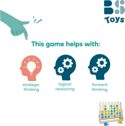 Jucătorii aruncă pe rând jetoane albastre și verzi în grilă și încearcă să creeze o conexiune de patru în culoarea lor. În același timp, își blochează adversarul și planifică cu câteva mutări înainte – un antrenament ideal pentru gândirea logică și tactică.