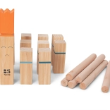Descoperă jocul atemporal Kubb, cunoscut ca șahul viking, ideal pentru grădină, plajă sau parc. Distracție de echipă pentru 2–6 jucători de la 8 ani, care combină îndemânare, strategie și fair play. Aruncă bețele din lemn, doboară kubb-urile adversarului și, la final, regele. Lemn masiv de calitate din surse gestionate responsabil, muchii rotunjite pentru siguranță și execuție durabilă pentru ani îndelungați de joc.