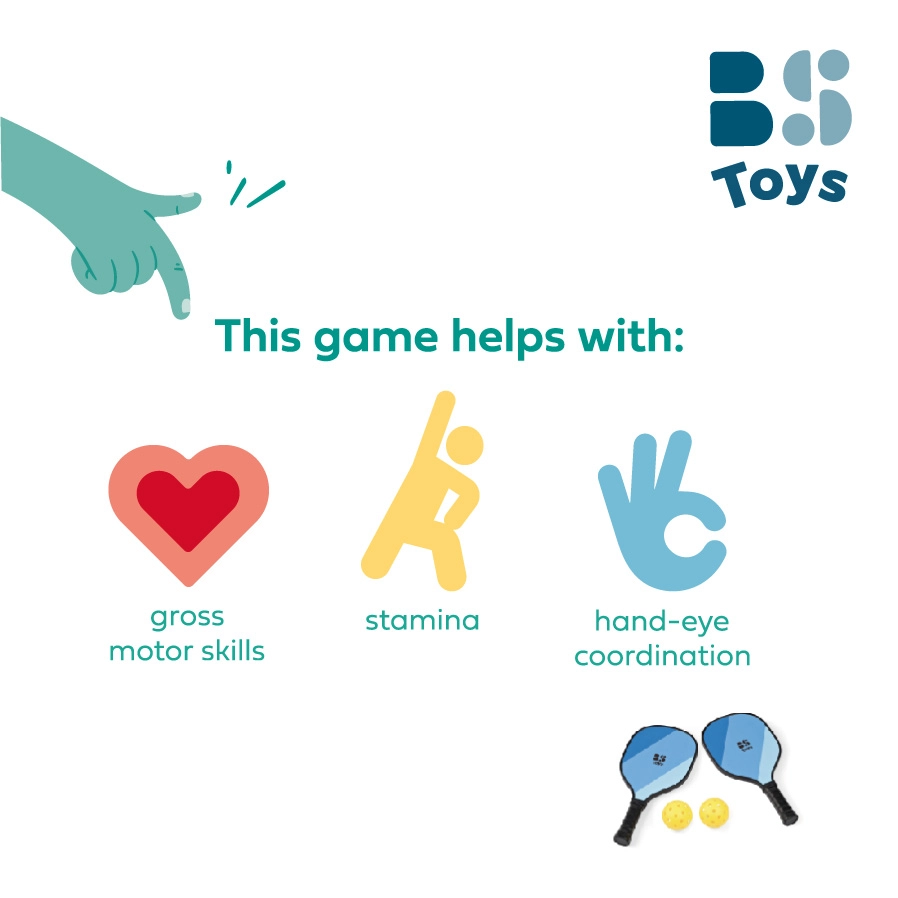 Pickleball este un joc dinamic cu mingea, care combină elemente din tenis, badminton și tenis de masă. Datorită paletelor mai ușoare și mingii din plastic, mai lente, cu perforații, este mai accesibil decât tenisul clasic și este îndrăgit rapid de copii, începători și adulți. Setul este potrivit pentru joc atât afară, cât și în interior, începând de la 8 ani.