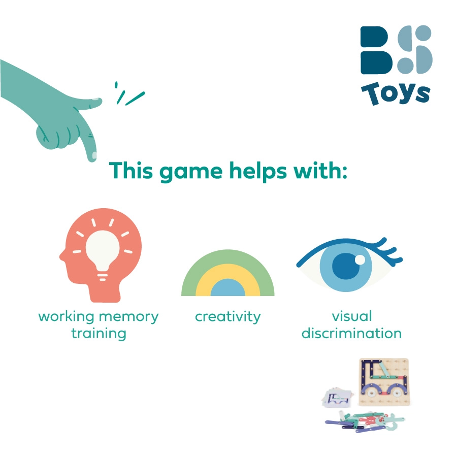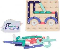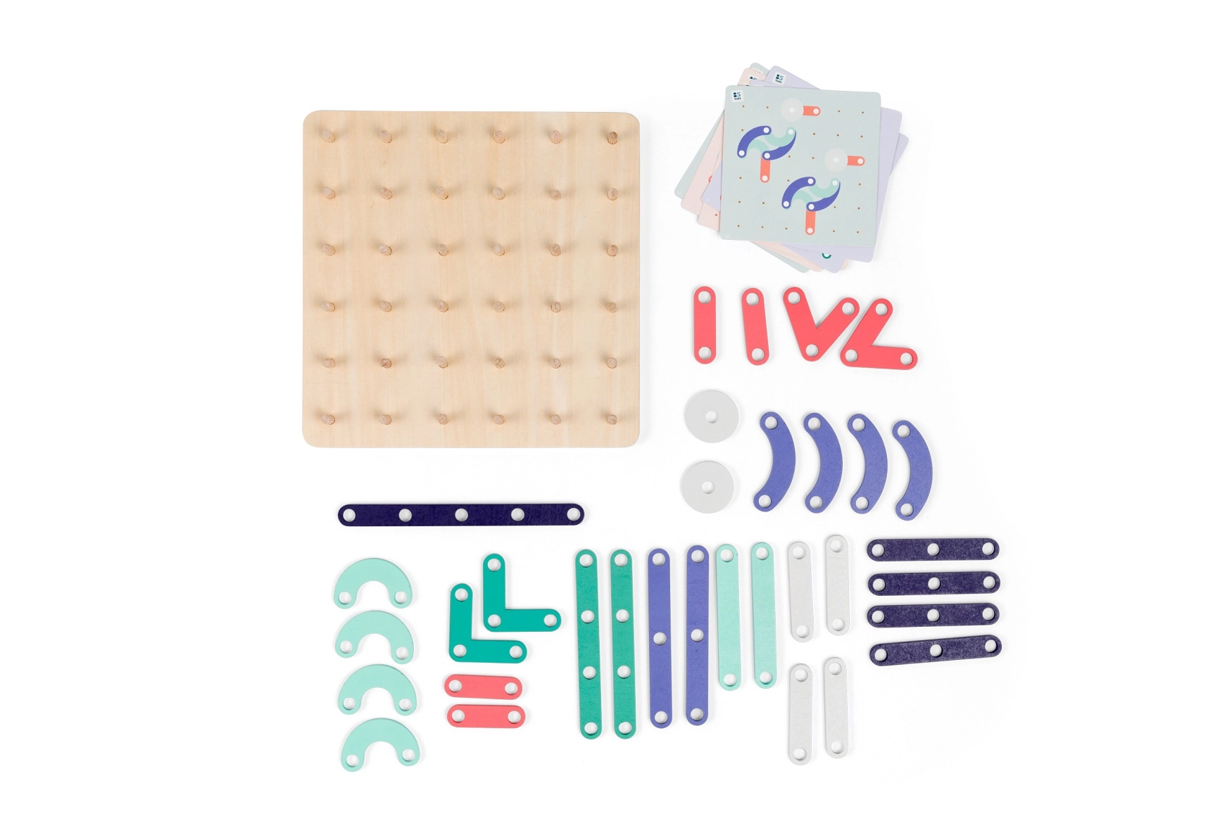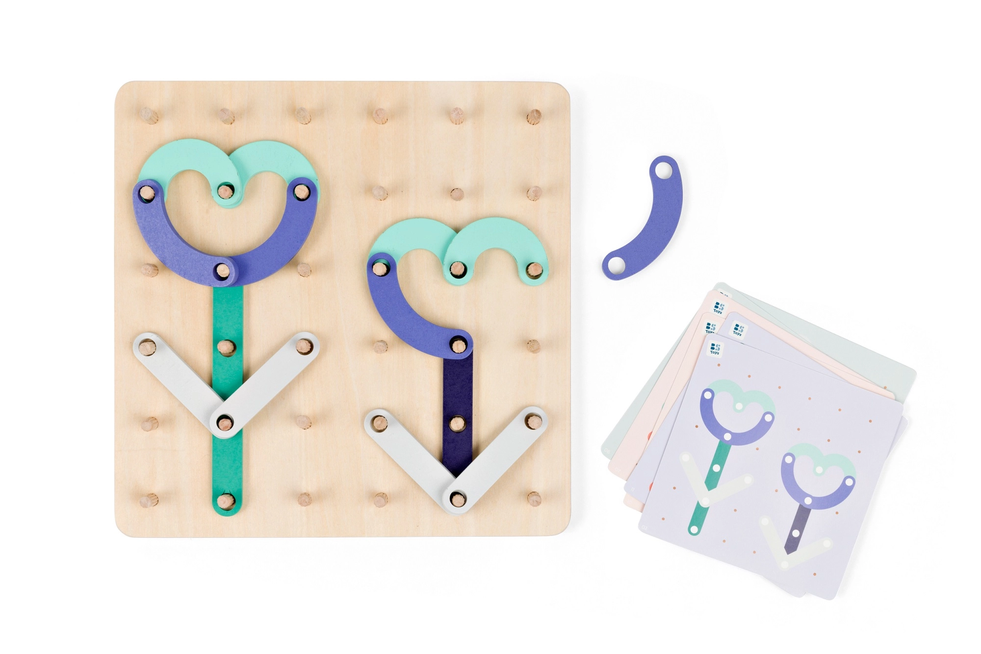 GEOPLANK este un joc creativ care sprijină curiozitatea naturală a copiilor. Datorită pieselor colorate din lemn, copiii pot crea imagini originale, pot copia motive de pe carduri sau își pot imagina compoziții proprii. Jocul dezvoltă percepția vizuală, gândirea logică și coordonarea mână–ochi.