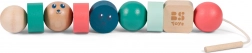 Descoperiți un joc motric distractiv care îi ghidează natural pe copii către exersarea îndemânării și răbdării. Mărgelele mari din lemn, în diverse forme și culori, sunt ușor de prins și de înșirat pe șnurul cu capete din lemn. Această activitate stimulează dezvoltarea motricității fine, coordonarea mână–ochi și recunoașterea culorilor.