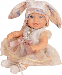 Păpușa bebeluș adorabilă de la WOOPIE va încânta orice mică îngrijitoare. Datorită dimensiunii compacte de 24 cm, stă perfect în mâinile copiilor, are trăsături realiste, un zâmbet delicat și poartă o rochiță pastel cu detalii. O căciuliță moale cu urechi lungi de iepuraș îi adaugă farmec. Joaca cu bebelușul dezvoltă empatia, imaginația și responsabilitatea – un cadou ideal pentru copii, acasă sau în călătorii.