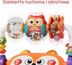 - bufniță rotativă cu zornăitori, figurine de animăluțe, inele/biluțe colorate