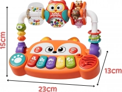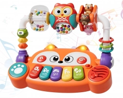 Căutați o jucărie care să distreze bebelușul și, în același timp, să-i susțină dezvoltarea încă din primele luni? Pianul interactiv de la Woopie, în forma unei vulpițe adorabile, îmbină muzica, lumina, culorile și mișcarea. Oferă 5 clape muzicale (Do, Re, Mi, Fa, Sol), efecte luminoase LED sincronizate cu sunetele și elemente rotative cu zornăitori pentru stimularea simțurilor. Datorită construcției sigure din materiale netoxice și butoanelor ușor de apăsat, este ideal pentru mânuțele mici și susține dezvoltarea senzorială, muzicală și cognitivă.