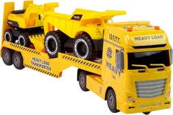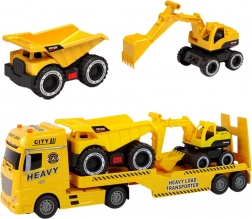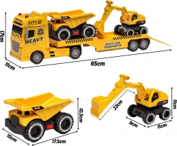 Descoperă un set mare de construcție care îi va încânta pe toți micii fani ai utilajelor. Camionul de remorcare cu rampă de încărcare mobilă încarcă și descarcă ușor vehiculele incluse. Girofarurile care clipește realist și sunetele de motor, claxon și sirenă activate prin butoane adaugă autenticitate jocului. Excavatorul are braț manual controlabil cu cupă, iar basculanta este echipată cu benă rabatabilă pentru „descărcarea materialului”.