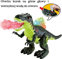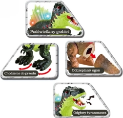 Dinozaur interactiv spectaculos Tyrannosaurus Rex de la Woopie le oferă copiilor o aventură preistorică unică. Poate merge înainte, are maxilar mobil, spate iluminat colorat și emite sunete autentice de răget. În plus, pulverizează efectuos ceață care imită flacăra de foc.