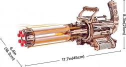 Pregătește-te de acțiune cu modelul 3D din lemn ROKR al unei mitraliere rotative, care îmbină construcția și distracția într-un singur pachet. Asamblează un model mecanic detaliat cu șase țevi rotative, capabil să lanseze până la 36 de elastice printr-un mecanism de angrenaje eficient. Bucură-te de tragere rapidă, dar sigură, asamblare ușoară fără lipici și un obiect de colecție și decor unic pentru vitrina ta.