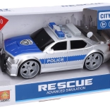 Pornește în acțiune cu mașina de poliție detaliată, cu lungimea de 27 cm. Datorită mecanismului inerțial, vehiculul pornește ușor, iar efectele luminoase și sonore realiste (motor, marșarier, claxon, girofar) intensifică fiecare intervenție. Capota se deschide printr-o simplă apăsare a butonului de pe acoperiș.