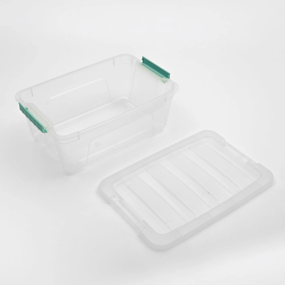 Cutie de depozitare practică din plastic, cu un volum de 12 l, în variantă transparentă pentru control facil al conținutului. Ideală pentru jucării, seturi de construcție, accesorii de sezon și mărunțișuri pentru casă. Datorită capacului închis etanș păstrează totul ordonat și protejat de praf.