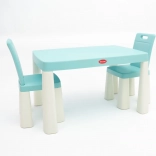 Set practic și sigur pentru copii, format din măsuță și două scăunele din plastic rezistent, pentru joacă, desen și gustări, acasă sau în grădină. Oferă construcție stabilă, curățare ușoară și design modern în culoare albastru‑alb. Scăunelele pot fi folosite cu spătar sau fără pentru confort și flexibilitate.