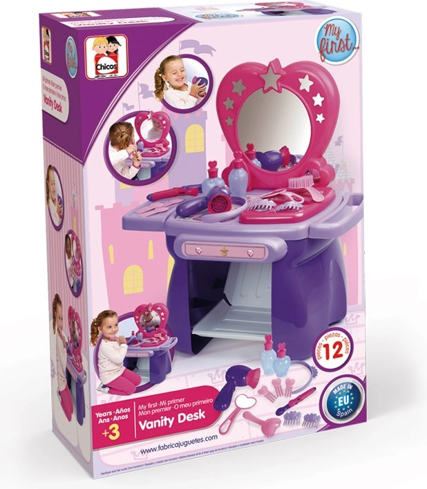 Produsul este livrat într-o cutie atrăgătoare „My First Vanity Desk”, ideală ca dar pentru copii de la 3 ani.
