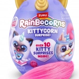 O nouă serie a îndrăgitelor RAINBOCORNS aduce pisicuțe Kittycorn adorabile cu cozi extra moi și lungi. Fiecare pisicuță de pluș are pe piept o inimioară sclipitoare care, după ștergere, dezvăluie ce iubește puiul tău. În interior vei găsi și un mini Boo‑Boocorn într-un ou mic, autocolante și alte accesorii pentru joacă creativă.