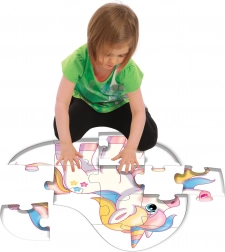 Acest puzzle conturat în formă de unicorn îi va încânta pe toți micii iubitori de povești. Imaginea asamblată măsoară aproximativ 53 × 55 cm, fiind clară, ușor de urmărit și perfectă pentru asamblare pe podea. Piesele mai mari se țin confortabil chiar și de către copiii mai mici.