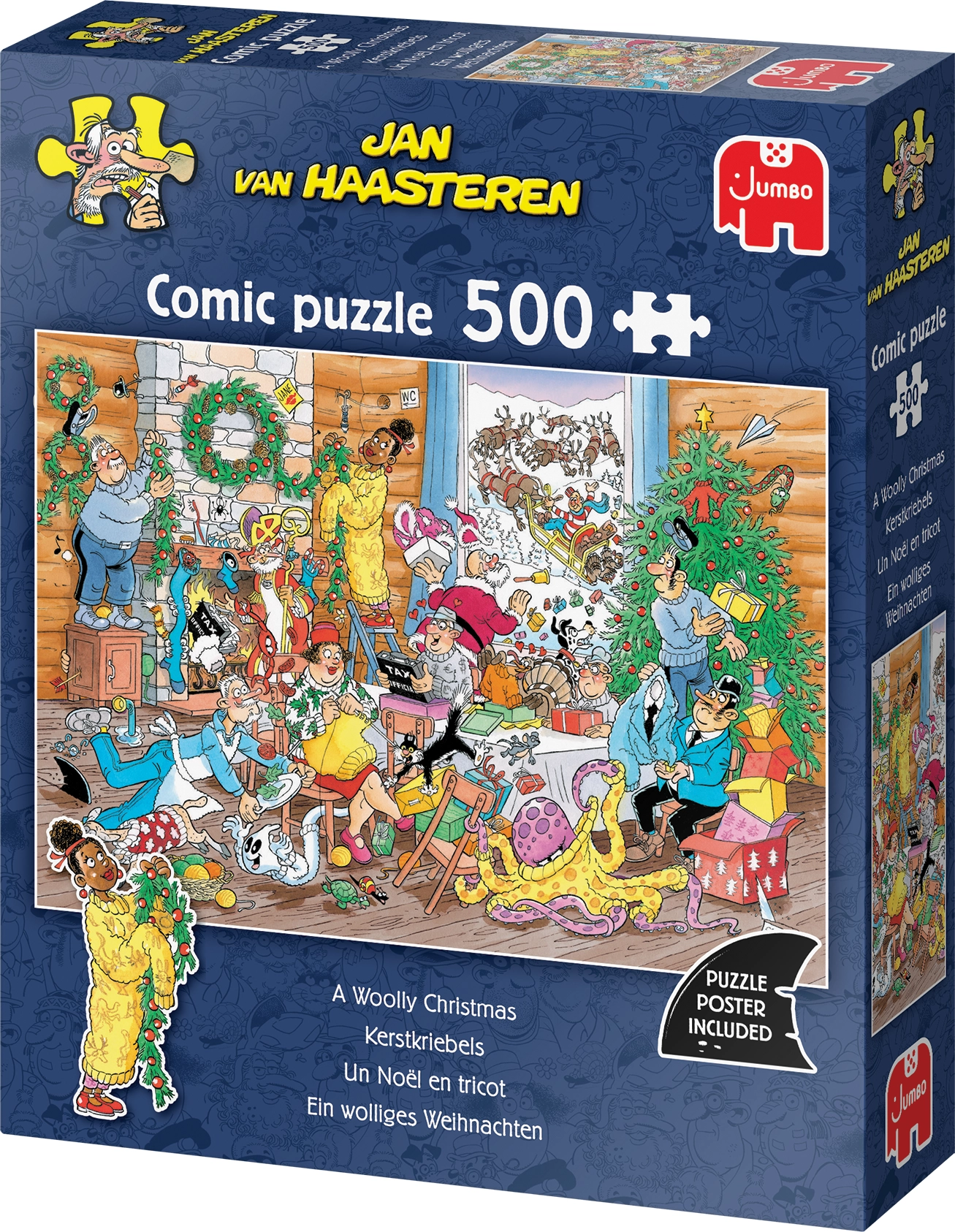Bucurați-vă de ore întregi de distracție cu umorul legendar al lui Jan van Haasteren. Acest puzzle JUMBO de calitate, cu motivul „Sărbători de iarnă din lână”, oferă 500 de piese, o ilustrație colorată și detaliată plină de glume și simboluri ascunse, precum înotătoarea de rechin și alte elemente iconice. Perfect pentru momente în familie și relaxare.