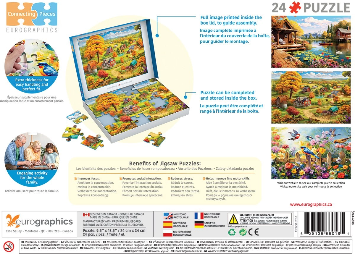 Descoperiți relaxarea liniștitoare a asamblării cu puzzle-ul EUROGRAPHICS Connecting Pieces: Viață liniștită. Piesele mari și designul atent susțin abilitățile cognitive, motricitatea fină și interacțiunea socială. Ideal pentru seniori și pentru persoanele cu mobilitate redusă sau demență. Asamblarea direct în cutie facilitează manipularea și oferă o experiență confortabilă, fără stres.