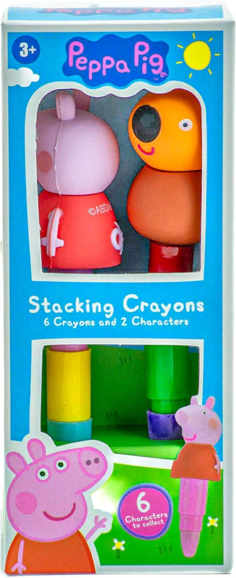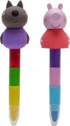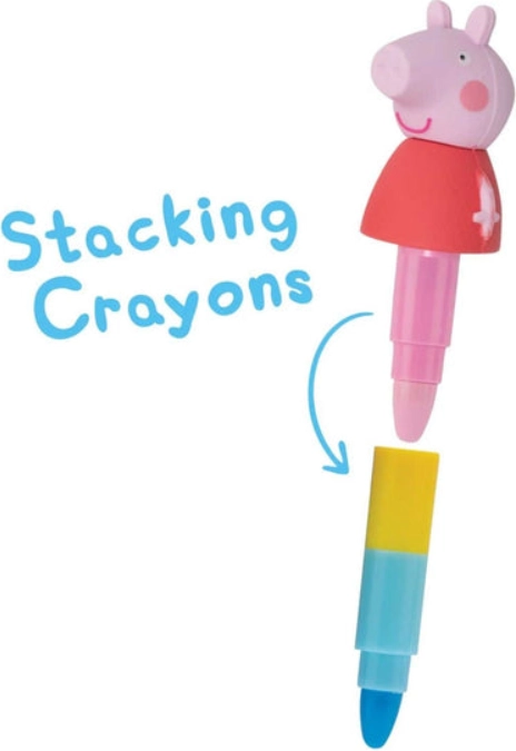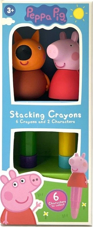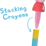 Susțineți creativitatea copiilor cu veselele creioane cerate stivuibile cu motive PEPPA PIG. Fiecare creion include trei culori într-unul singur, astfel încât copiii pot schimba ușor nuanțele la desen și colorare. Datorită corpului mai gros, creioanele se țin bine în mână și se rup mai greu.