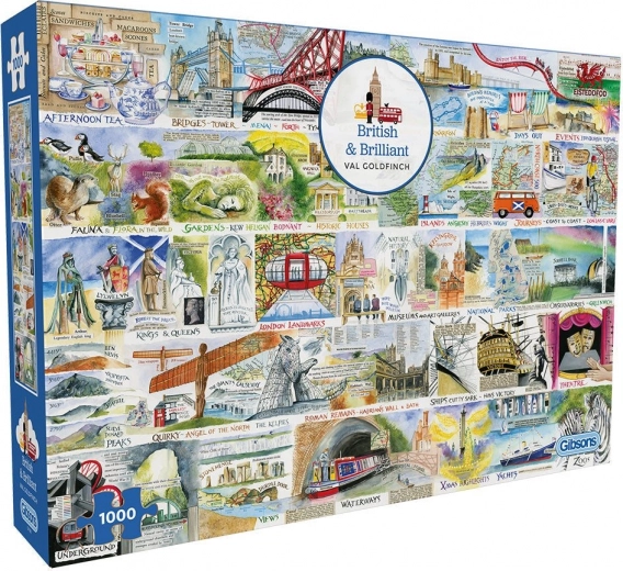 Descoperiți bucuria asamblării cu puzzle-ul GIBSONS Britanice și briliante. Datorită calității superioare, pieselor rezistente și decupajului precis, asamblarea este fluidă și satisfăcătoare. Puzzle-ul final, cu dimensiunea de aproximativ 68 × 49 cm, se evidențiază ca decorațiune și ca provocare grozavă pentru întreaga familie.