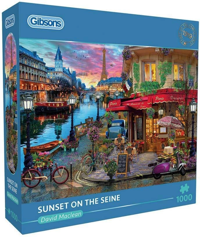 Descoperiți farmecul serii pariziene cu peisajul Senei la apus. Puzzle-ul GIBSONS este renumit pentru cartonajul de calitate, decupajele precise și culorile intense care evidențiază fiecare detaliu. Asamblarea este lină, plăcută și potrivită atât pentru începători, cât și pentru pasionații experimentați.