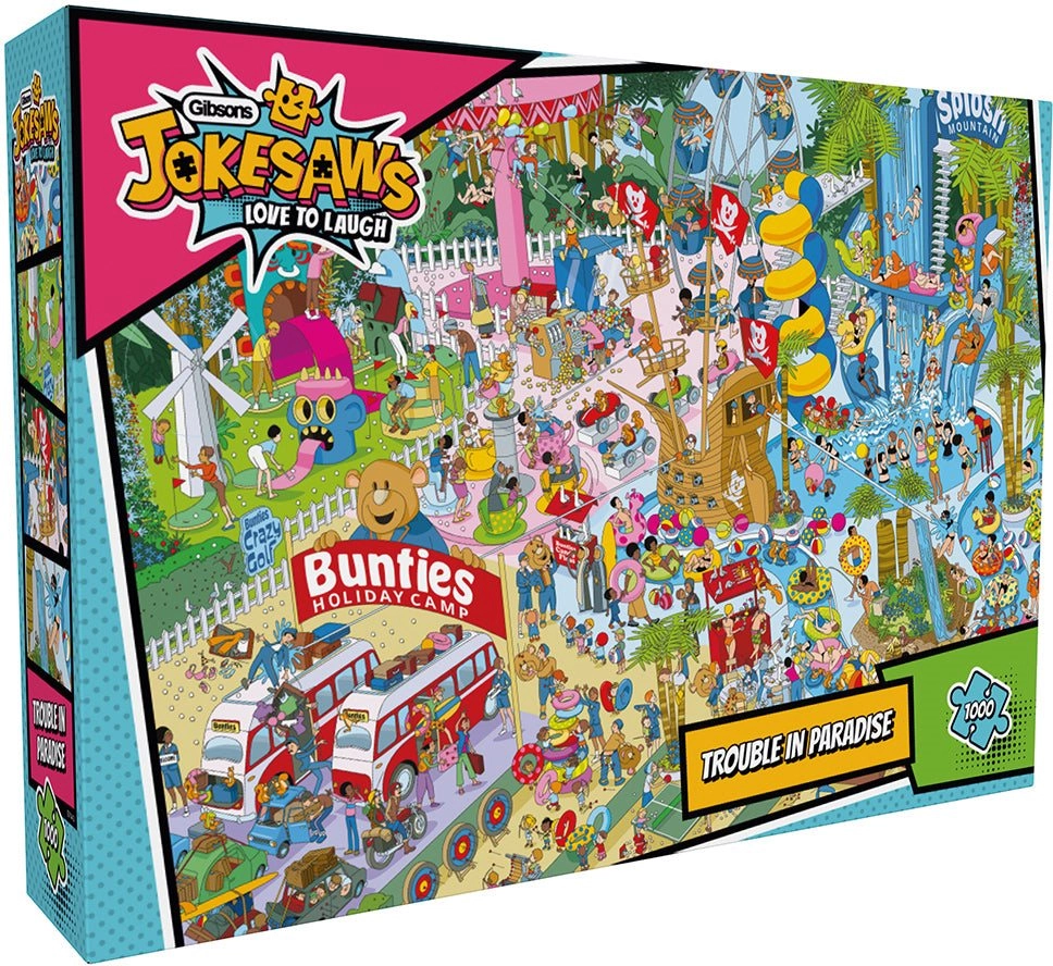 Căutați un puzzle care să vă amuze și, în același timp, să vă testeze abilitățile? Jokesaws: Trouble in Paradise aduce o scenă plină de umor, presărată cu gaguri și detalii mărunte pe care veți adora să le descoperiți. Cu 1000 de piese, reprezintă o provocare ideală pentru împătimiții puzzle-urilor sau pentru o după-amiază în familie.