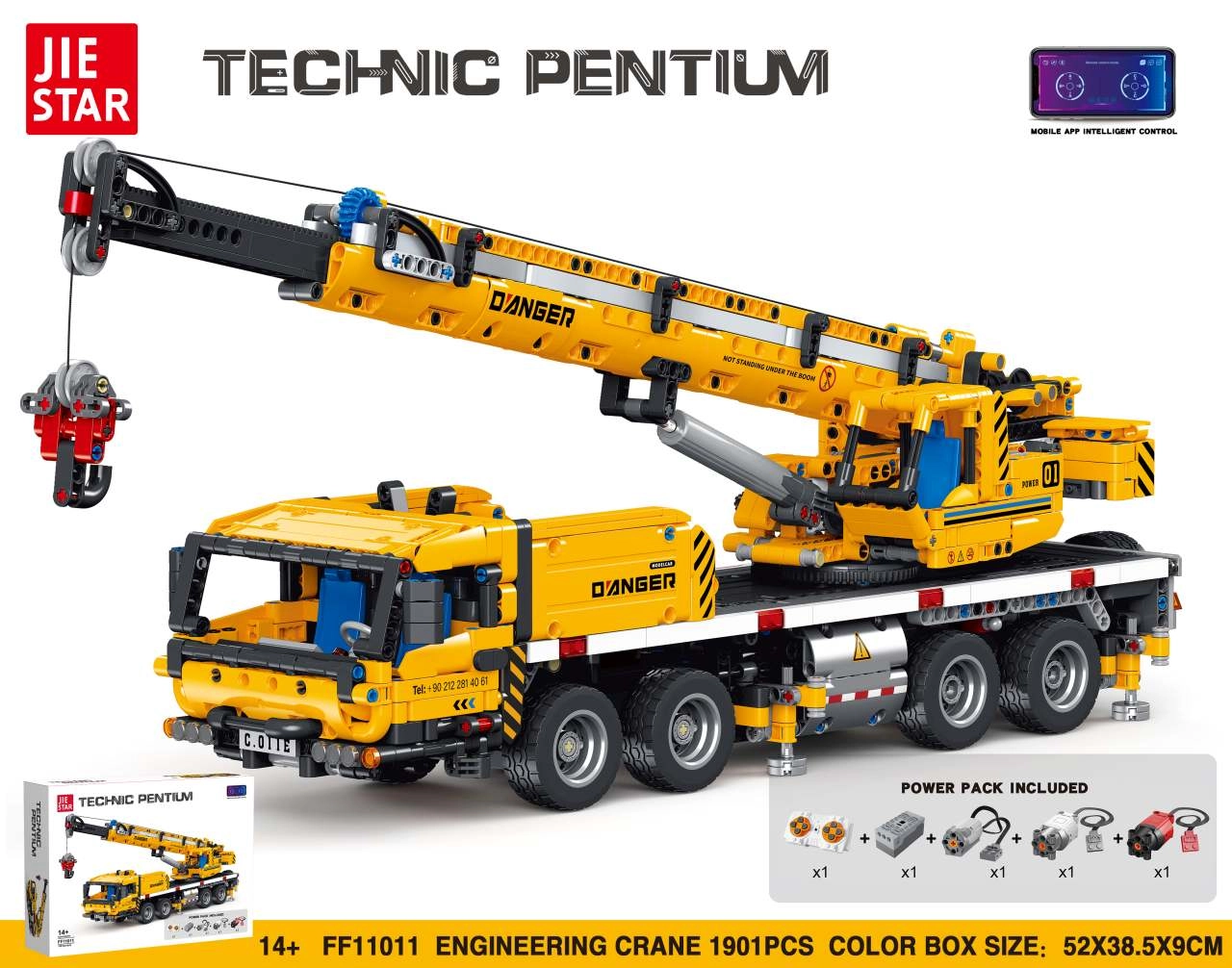 Asamblează o macara de construcție cu telecomandă complexă din 1901 piese și descoperă lumea tehnicii. Modelul oferă cabina rotativă 360°, braț mobil manual și control prin telecomandă sau aplicație mobilă. Ideal pentru copii mai mari și adolescenți de la 14 ani – dezvoltă motricitatea fină, imaginația spațială și răbdarea.