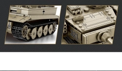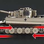 Bucură-te de o construcție precisă și de aspectul autentic al legendarului Panzerkampfwagen Tiger I. Datorită numărului mare de piese, redă fidel formele corpului, turelei și trenului de rulare, inclusiv detaliile caracteristice. Turela rotativă, țeava poziționabilă și trapele deschizabile adaugă realism modelului – fie pe raft, fie în „teren” de acțiune.